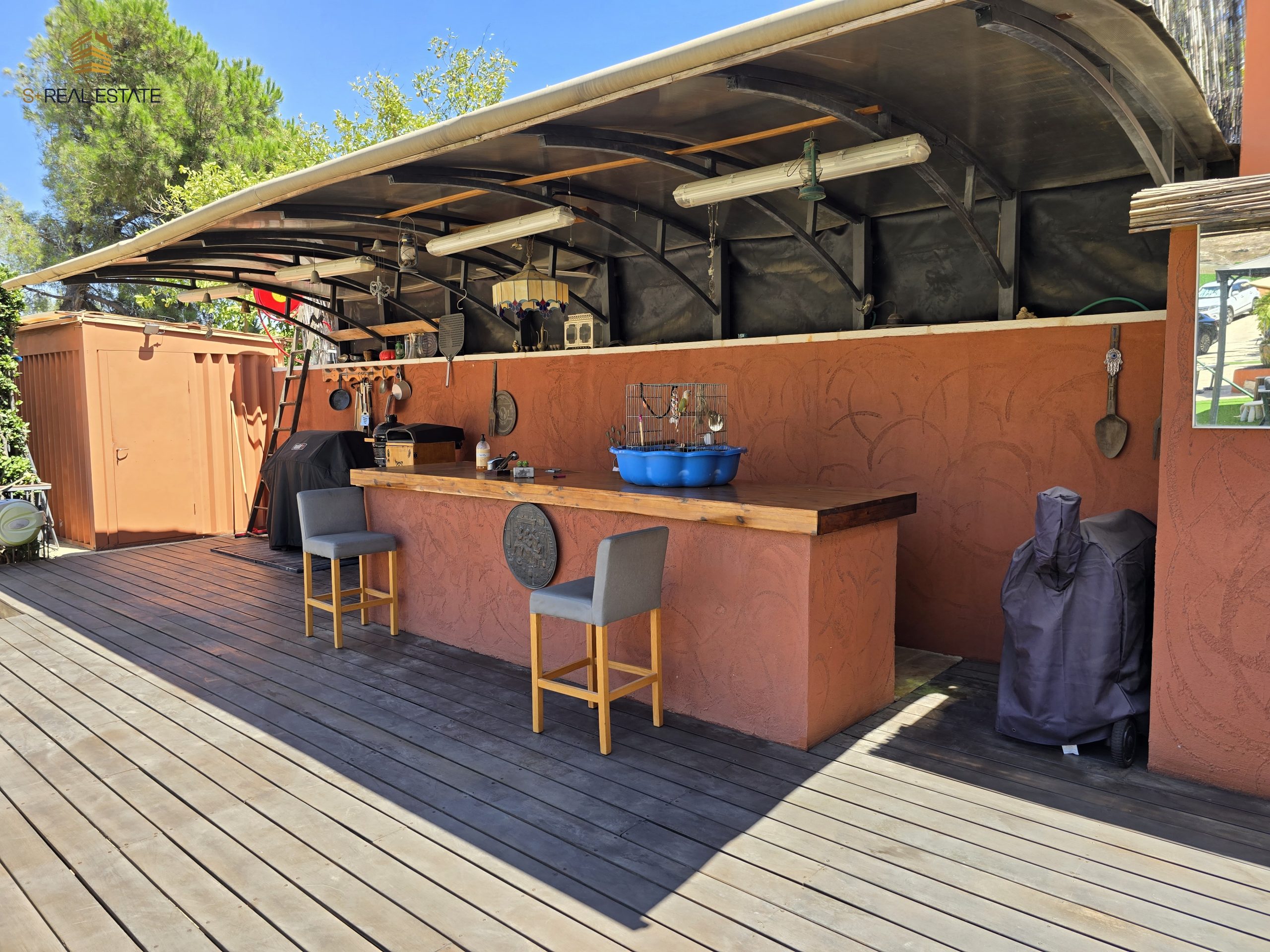 Préparation complète pour une piscine semi-couverte avec toutes les infrastructures prêtes, ainsi que toilettes extérieures, douche et cuisine extérieure entièrement équipée.