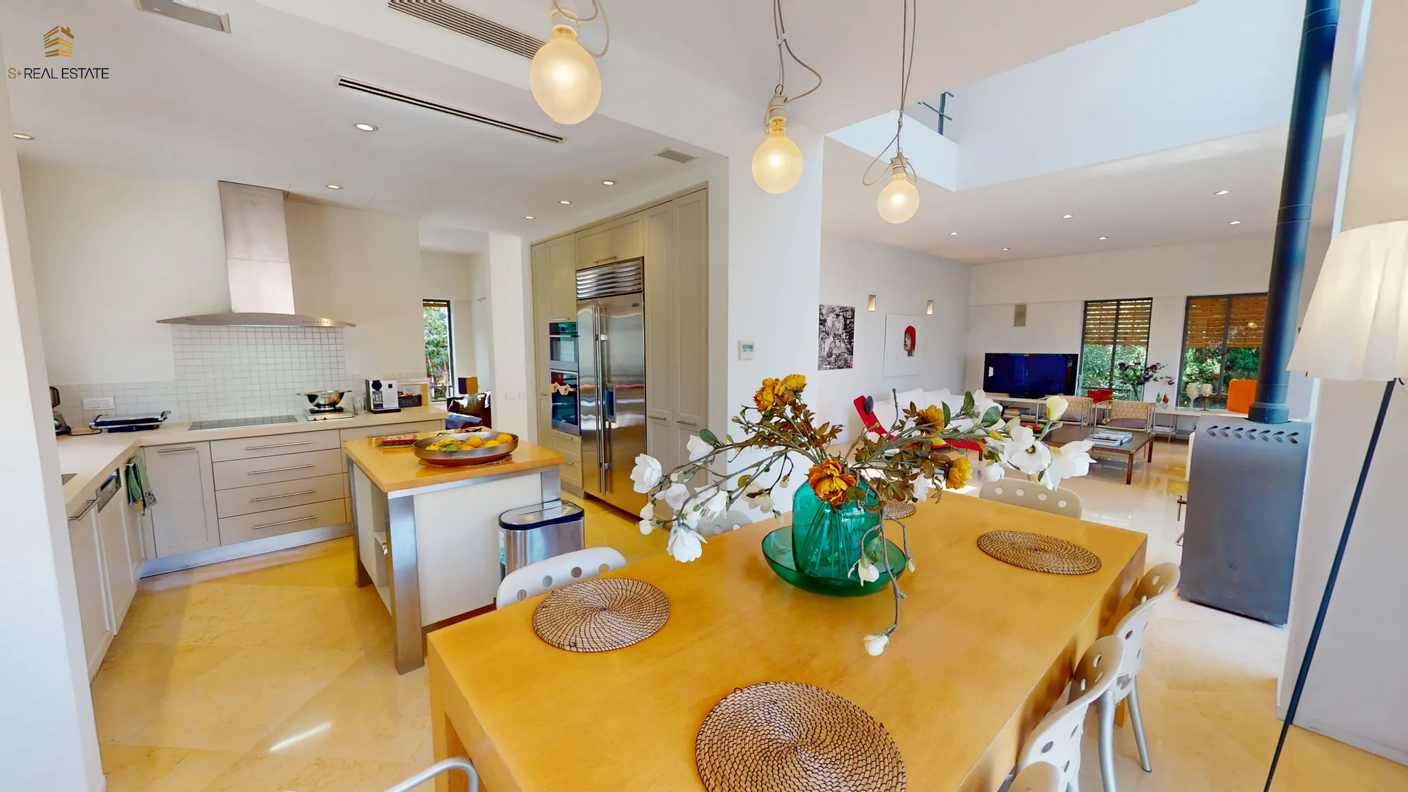 הוילה מעוצבת בסגנון כפרי בעל תכנון אדריכלי מוקפד, תקרות גבוהות עם חללים כפולים, חלונות רחבים, ונוף שנשקף מכל פינה בבית, חלוקה מעולה למשפחה עם מגוון אפשרויות לשינויים ללא השקעה גדולה, גינה היקפית עם עצי פרי.